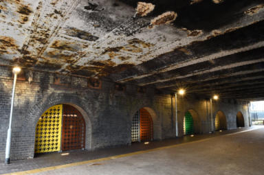 This artwork is installed in the arches of the